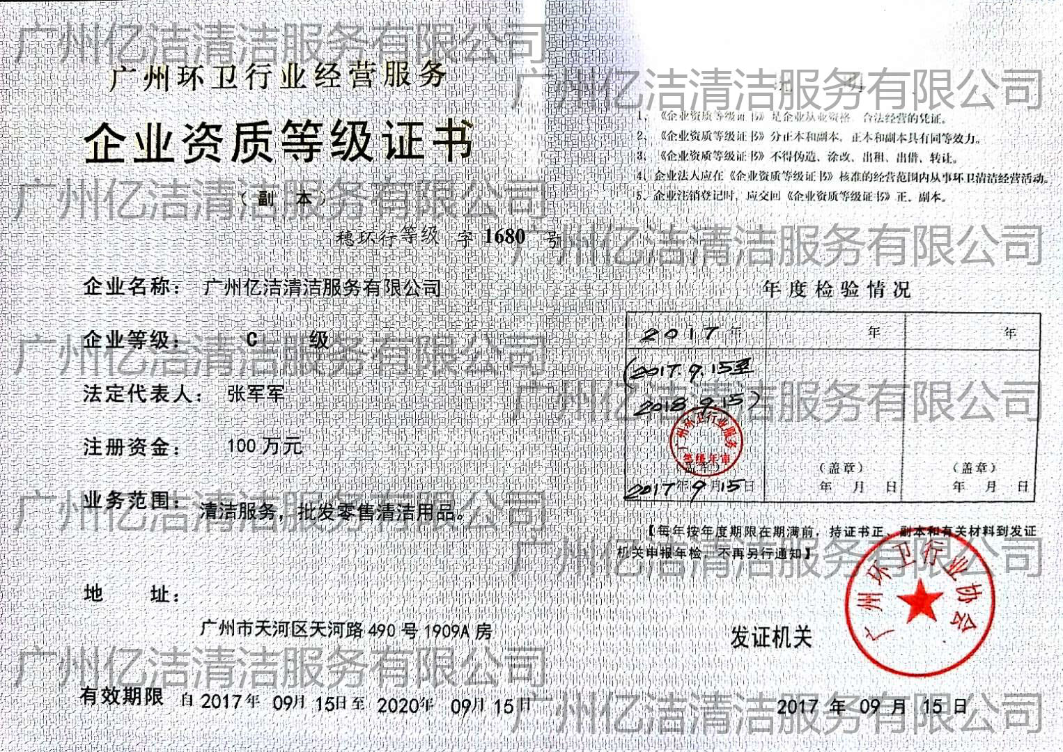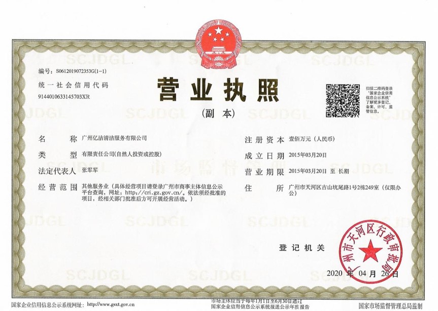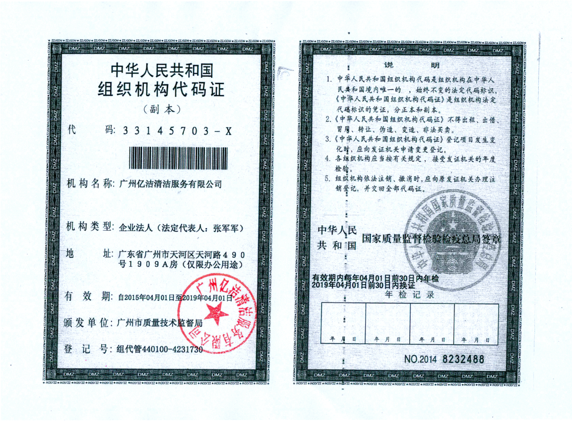 廣州億潔清潔服務(wù)有限公司是經(jīng)廣州市工商行政管理局批準(zhǔn)成立的(注冊資本:100萬元人民幣)。具有獨(dú)立法人資質(zhì)。公司成立2015年,公司具備完善的管理體系和高素質(zhì)管理隊(duì)伍,擁有特種技術(shù)人員33名,保潔服務(wù)人員上萬名,覆蓋廣州市,能及時(shí)調(diào)配并快速投入高效運(yùn)行。我們的每個員工都經(jīng)過公司的嚴(yán)格篩選,嚴(yán)格培訓(xùn),定期培訓(xùn)后持證上崗以保證服務(wù)品質(zhì),保障客戶的權(quán)利,利益,形象等不受損失。 廣州億潔清潔公司是一家設(shè)備齊全,技術(shù)強(qiáng)大的綜合型清潔服務(wù)公司,為客戶提供完善服務(wù)尊定了堅(jiān)定的基礎(chǔ)。 司于2010年全面推行了ISO9001質(zhì)量管理體系認(rèn)證和ISO14001國際環(huán)保體系認(rèn)證。先后獲得廣州高層建筑外墻清洗維修作業(yè)【安全資質(zhì)證書】、【廣州環(huán)衛(wèi)企業(yè)等級證書C級資質(zhì)】、廣州疾控中心頒發(fā)的【四害消殺服務(wù)資質(zhì)證】、【空氣治理A級資質(zhì)】、中國石材協(xié)會頒發(fā)的【石材資質(zhì)B級資質(zhì)】等。 廣州億潔清潔服務(wù)有限公司致力于打造專業(yè)、實(shí)惠、靠譜的保潔服務(wù)公司,把專業(yè)的事情交給專業(yè)的我們,您放心! 億潔清潔服務(wù)項(xiàng)目: 廣州保潔服務(wù):新建樓宇、別墅、酒店、醫(yī)院、辦公樓、賓館、企事業(yè)單位廠房竣工后開荒及裝修后精細(xì)保潔.工程保潔服務(wù)。 廣州物業(yè)托管:為廣州市各大企事業(yè)單位、賓館、政府機(jī)關(guān)、小區(qū)物業(yè)、酒店及廠房提供專業(yè)化保潔、園林、設(shè)施維護(hù)等管理服務(wù)。 廣州高空作業(yè):高空玻璃幕...[詳情]